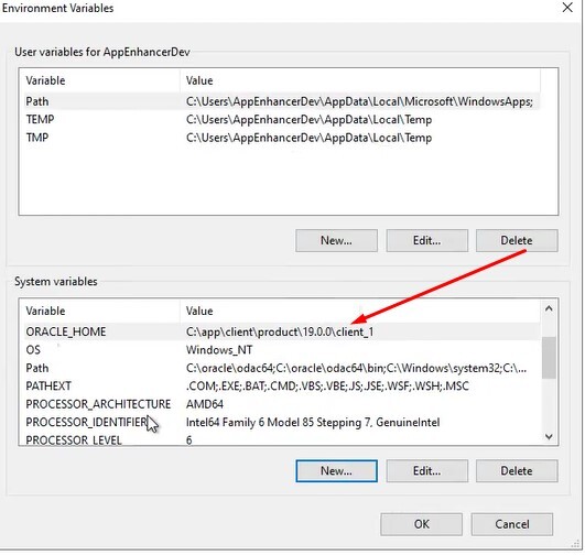 - ORACLE_HOME - This should be pointing to the Oracle client directory. For example: