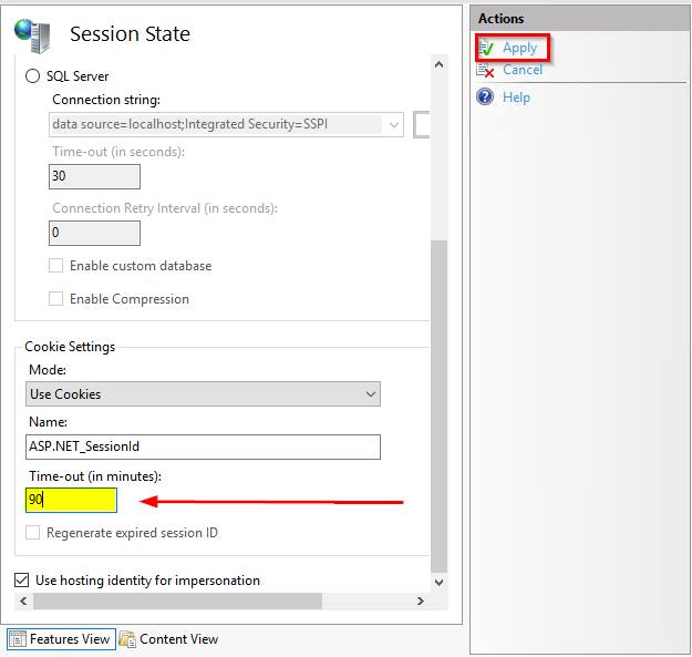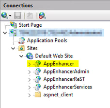 Open IIS on the AppEnhancer host server. Increase the following number of minutes in the setting below: