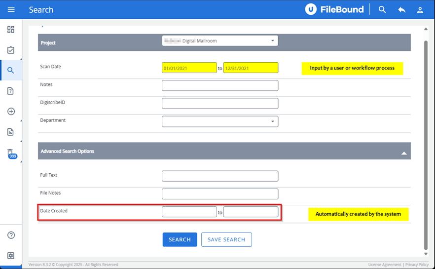 In this example, the Scan Date field is used to locate all files from 2021. If unavailable, Date Created can be used instead.